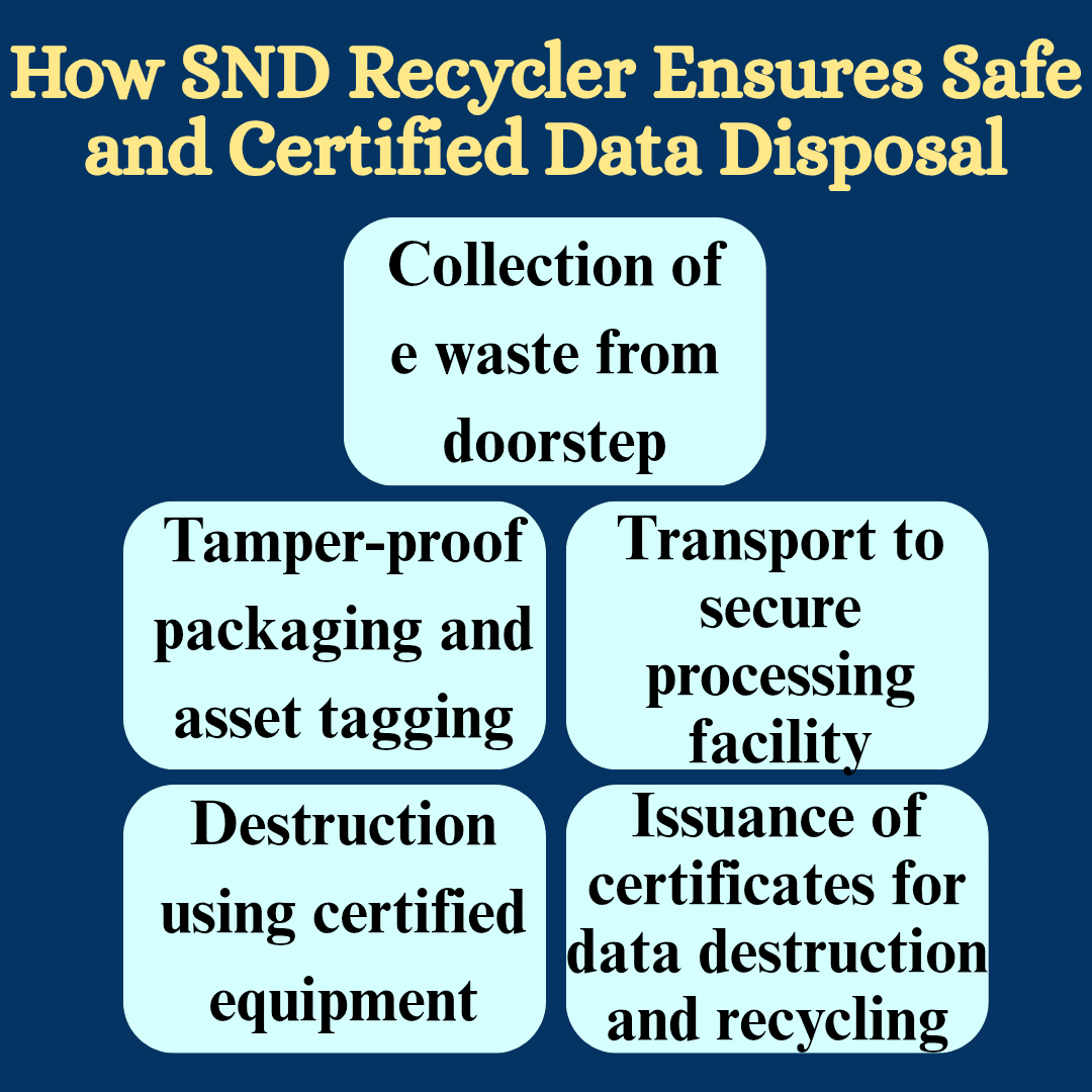 SND Recycler is a CPCB-authorized, ISO-certified organization offering end-to-end e waste and data destruction services. Here's how we operate: