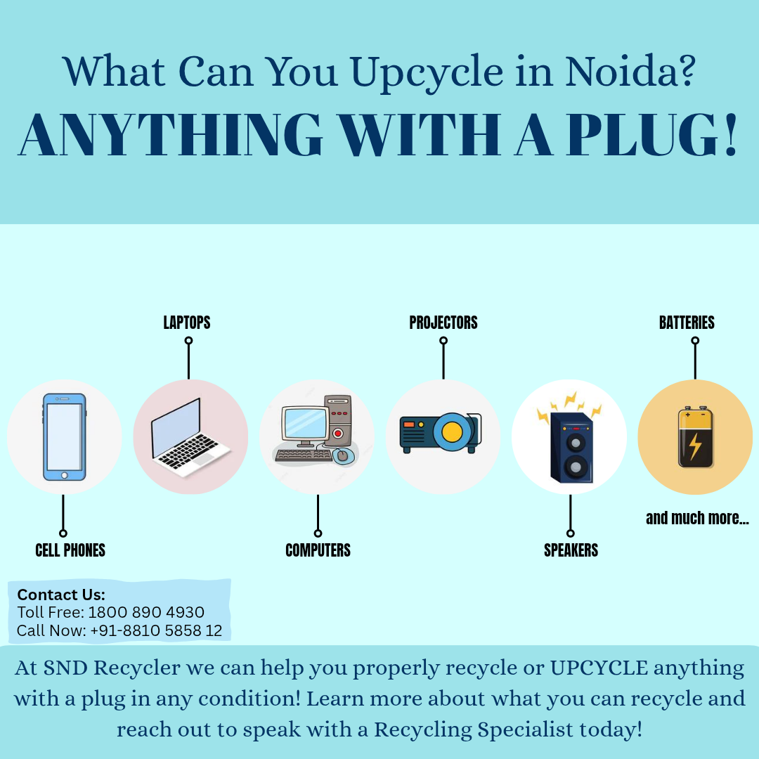 EWaste recycling in Noida is important since is one of the most rapidly developing cities in Uttar Pradesh, with a strong presence of IT hubs, industries, and tech savvy households. But this growth also generates a massive amount of electronic waste. In fact, India generated over 1.6 million tonnes of e-waste in 2022, and cities like Noida are major contributors. Most of this waste, old laptops, phones, routers, servers, and batteries ends up in landfills or unregulated scrap markets. That’s why EWaste Recycling in Noida is not just a legal need, it’s an environmental responsibility. At SND Recycler, we offer [CPCB](https://cpcb.nic.in/registration-certificate-for-producers/) & SPCB-certified e-waste recycling services across Noida and Greater Noida delivering fast, legal, and eco-friendly pickup and disposal for individuals and businesses. Whether you’re a tech company in Sector 62 or a manufacturer in Noida Phase-2, our team ensures your e-waste is handled safely, responsibly, and 100% lawfully.