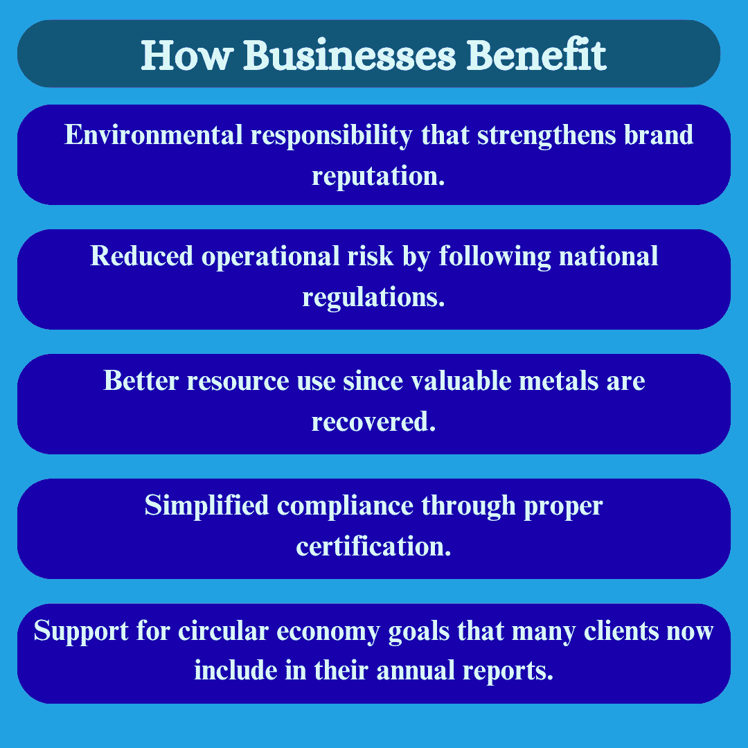 Informal recycling may look cheaper but it harms the environment and can expose a company to legal trouble. Certified recyclers remove that risk completely.